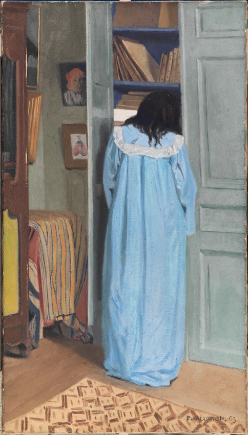 2 Intérieur, femme en bleu fouillant dans une armoire, en 1903, Félix Vallotton (1865-1925), huile sur toile, 81,0 x 46,0 cm, Paris, musée d’Orsay
