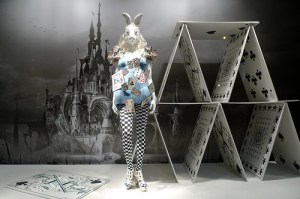 Dans les vitrines du Printemps Haussman aussi on pouvait voir le lapin blanc du pays des merveilles en prévision de la sortie du film de Tim Burton.