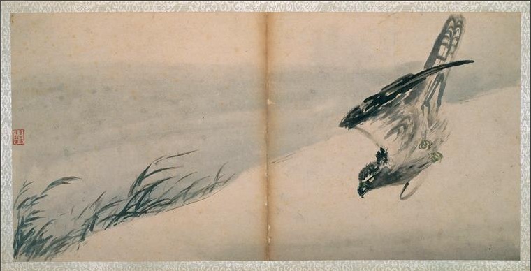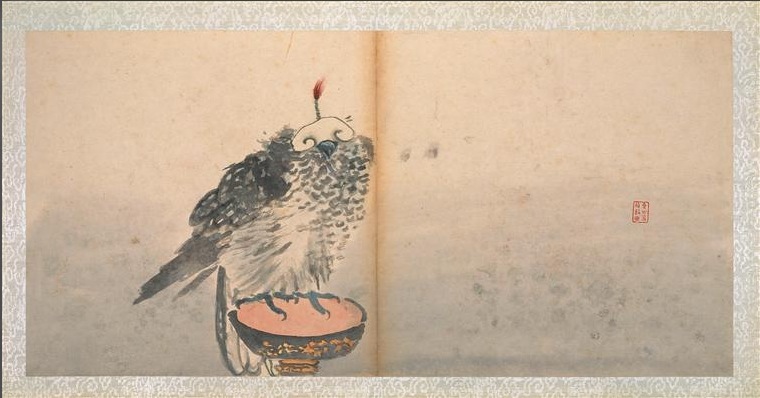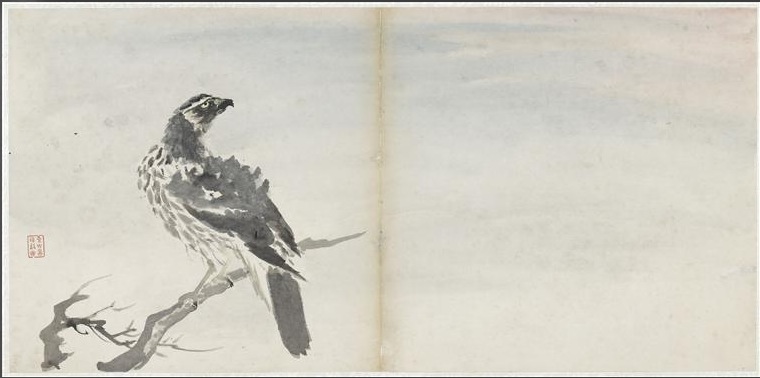 Dix peintures aux doigts, représentant des faucons et autres oiseaux de proie. Gao Qipei (1672-1734), conservé au Musée National des arts asiatiques Guimet