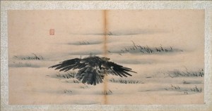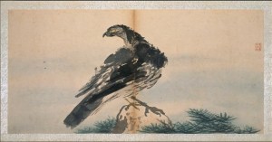 Faucon sur une branche de pin, Estampe d’Utamaro Kitagawa (1753-1806),