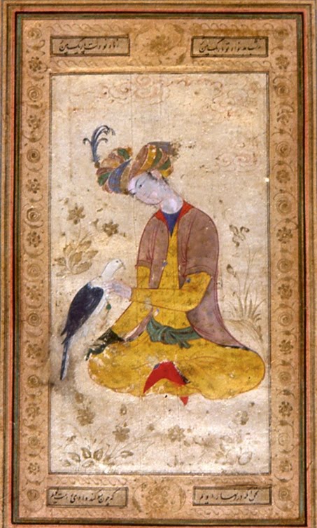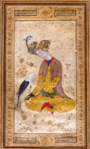 Chasseur caressant son faucon, Iran, Isfahan, début du XVIIe siècle, Encre, gouache et or sur carton, Département des Arts de l’Islam, Musée du Louvre