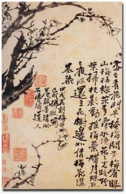 De la neige tombée sur les fleurs des glycines et des pruniers.