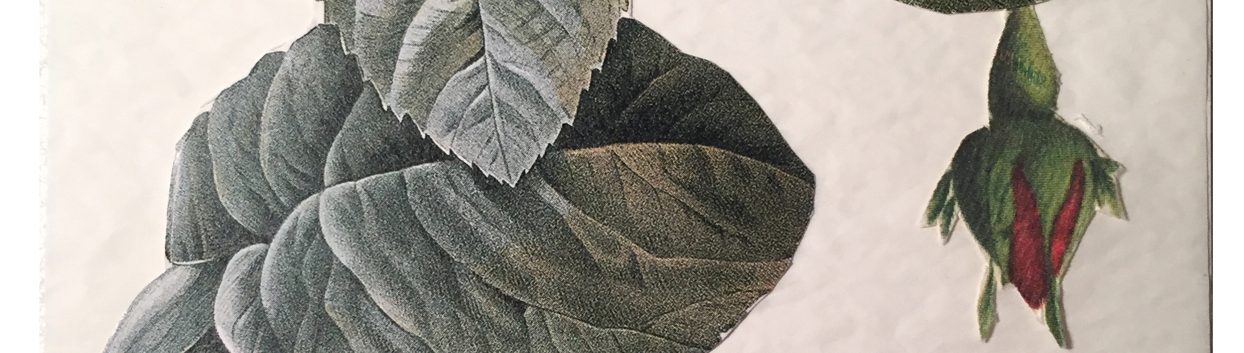 - Redouter Redouté, 2017, MengBeilan 孟蓓兰, collages sur papier gaufré, Diptyque, 20 x 18 cm, collection privée.