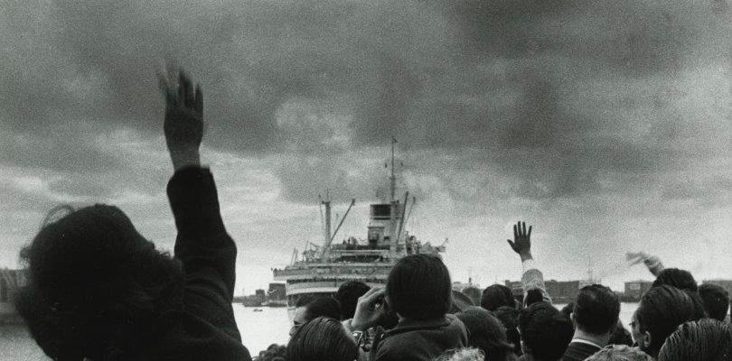 Stefano Robino, Alla partenza della Cristoforo Colombo, Genova (At the Departure of the Christopher Columbus, Genoa), 1957 Gelatin silver print. © Archivio Stefano Robino, courtesy Howard Greenberg Gallery, New York