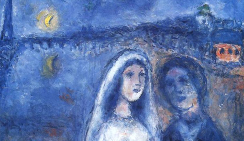 Les mariés de la tour Eiffel, 1982-83, Marc Chagall (1887-1985), huile sur toile, 61 x 50 cm, collection particulière