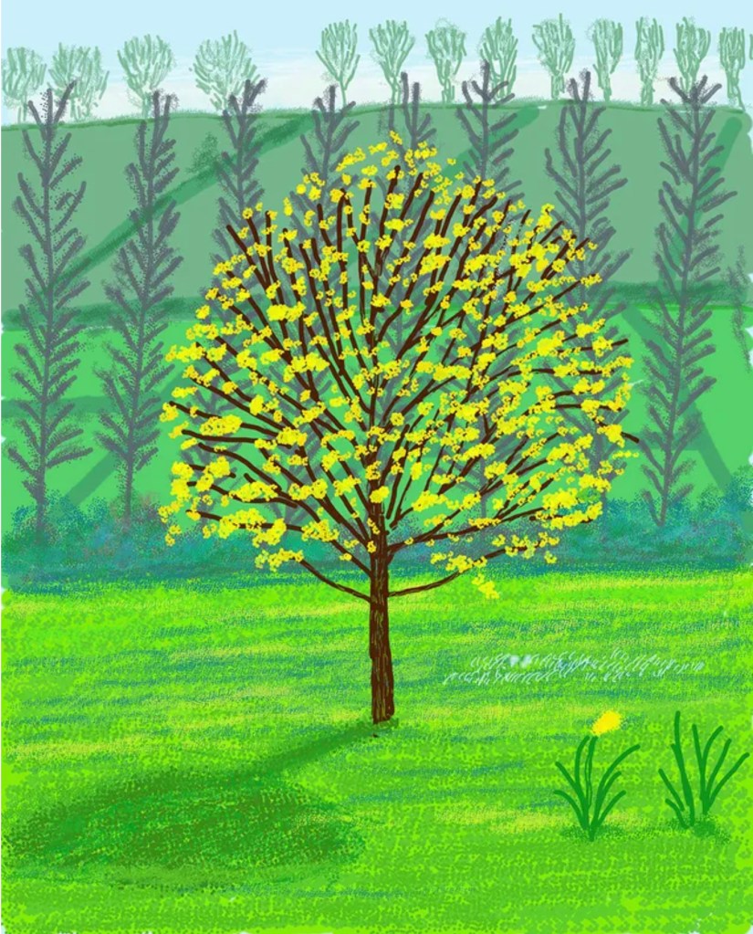 David Hockney, Quelque part en Normandie, le 15 avril  2020,