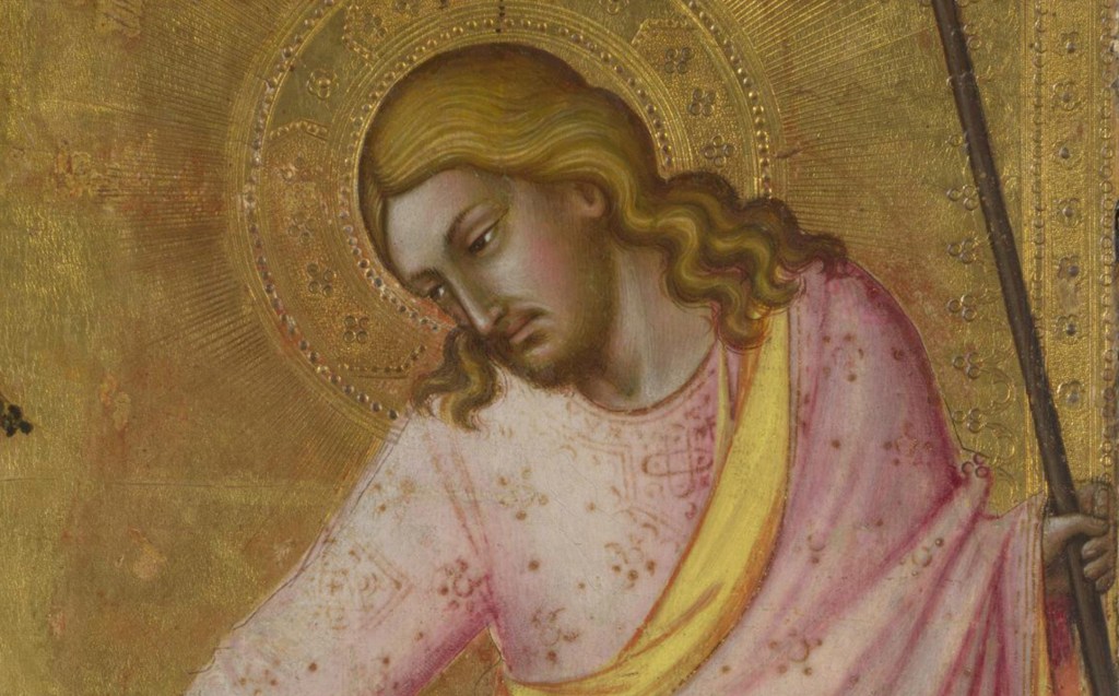 D’où vint sous le pinceau de Jacopo di Cione l’idée de ce rose poudré de la tunique de Jésus et jusqu’à ses joues pâles ?