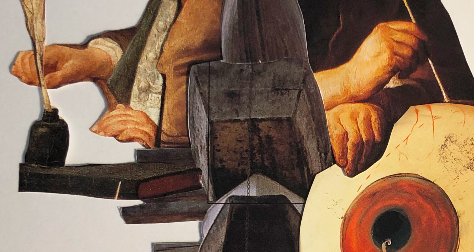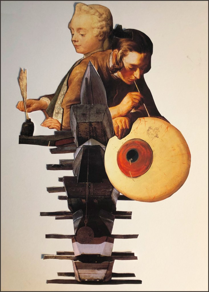 *BAM-184-S-99 n’est pas le nom d’une nouvelle étoile mais le numéro 184, septembre 1999 de ma collection (complète) de Beaux Arts magazine. Survivante de plus de six déménagements, elle attendait sagement que je me décide à lui donner une seconde vie. C’est le travail que j’ai entrepris : prendre un numéro au hasard, découper en suivant mon intuition, créer un collage puis écrire un texte à partir de cette image.