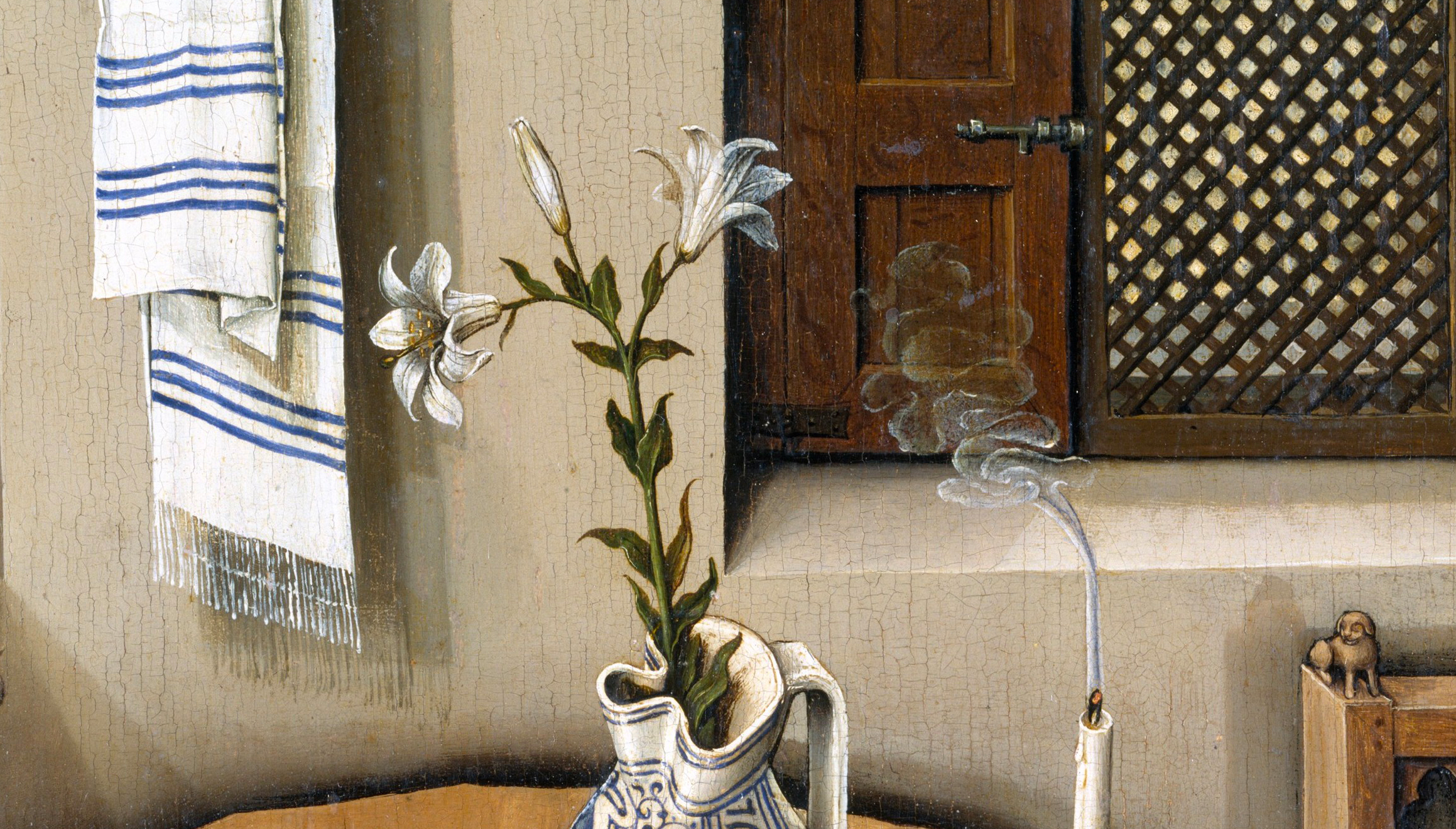 Le détail des Lys, issu du panneau central d’un triptyque de L’Annonciation, réalisé vers 1427-32 par le peintre flamand Robert Campin (1375-1444) — huile sur chêne de 64,1 x 63,2 cm — est conservé au Metropolitan Museum of Art, à New York.