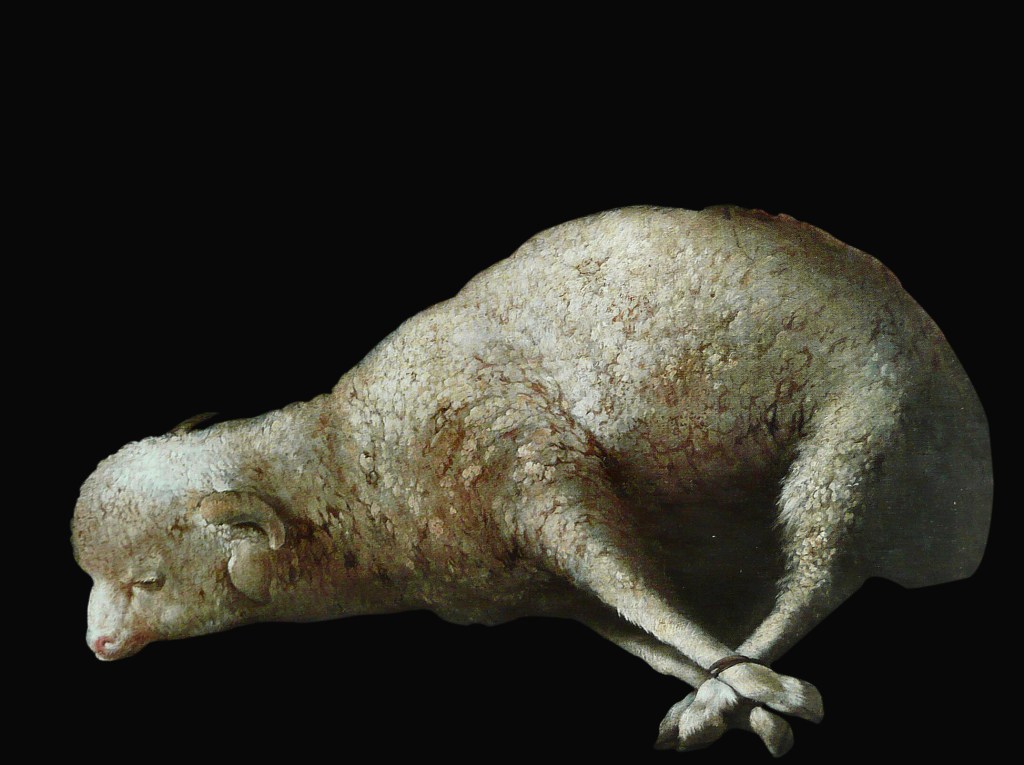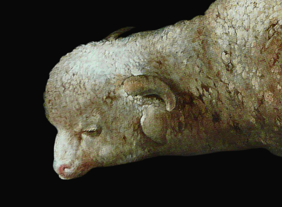 Dans l’évangile de Luc (2,7), il est question de la présence de bergers gardant leurs troupeaux. L’occident chrétien en a déduit qu’il s’agissait de moutons. Celui-ci, d’une facture très soignée, met en évidence les qualités sensorielles des choses, notamment le laineux du pelage.