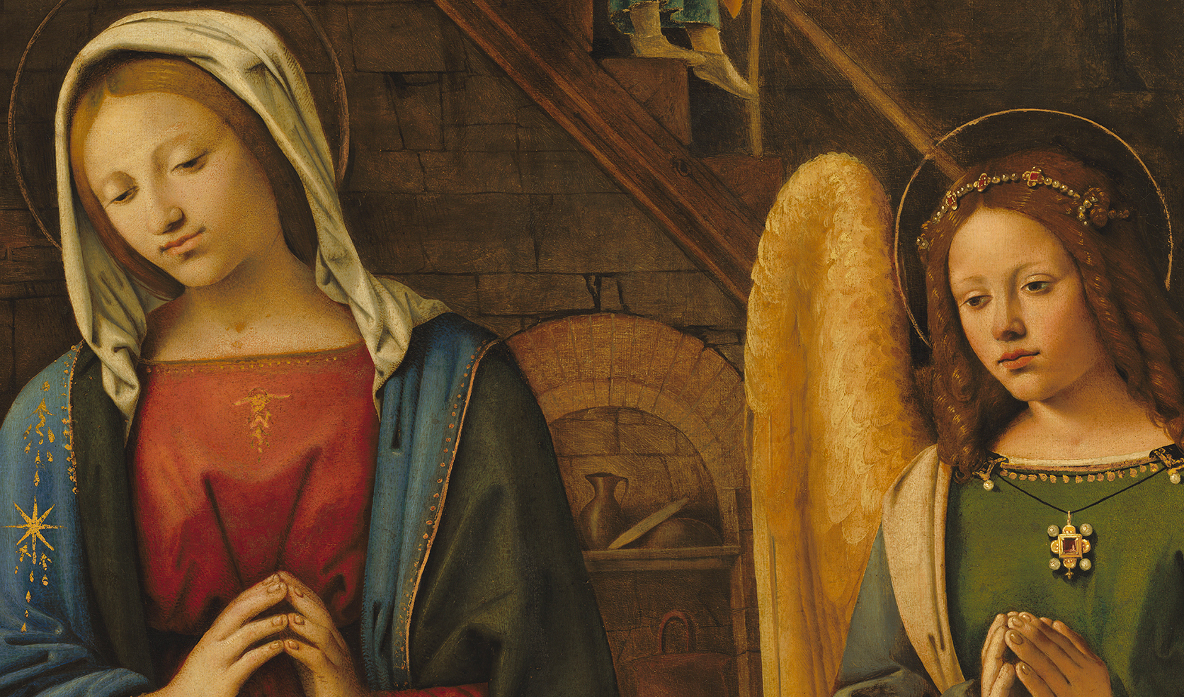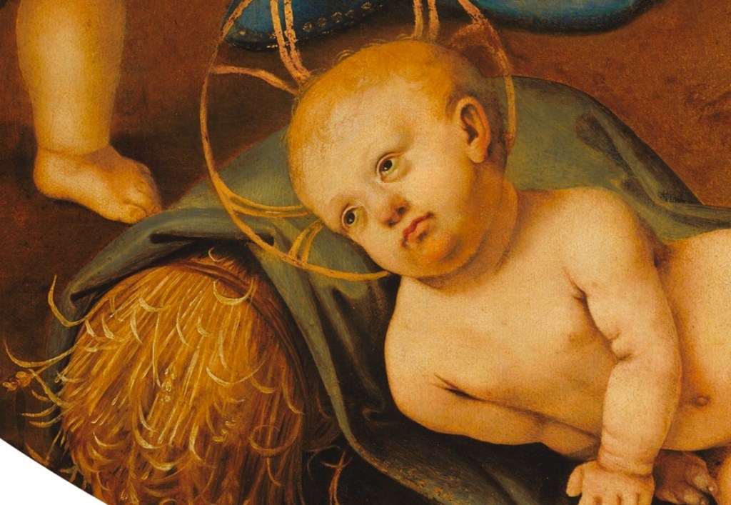 Comme pour l’œuvre précédente, on a affaire ici à un objet de dévotion probablement destiné à un usage privé. Dans ce tondo, en effet, la figure de Jean-Baptiste enfant, précurseur et premier fidèle du Christ (derrière l’enfant Jésus) et d’un ange « descendu » sur terre, agenouillé à côté de Marie — pendant que Joseph, en haut de l’escalier, et l’âne et le bœuf dans une prairie sont relégués au second plan — sont caractéristiques d’une métamorphose de la Nativité en Adoration.