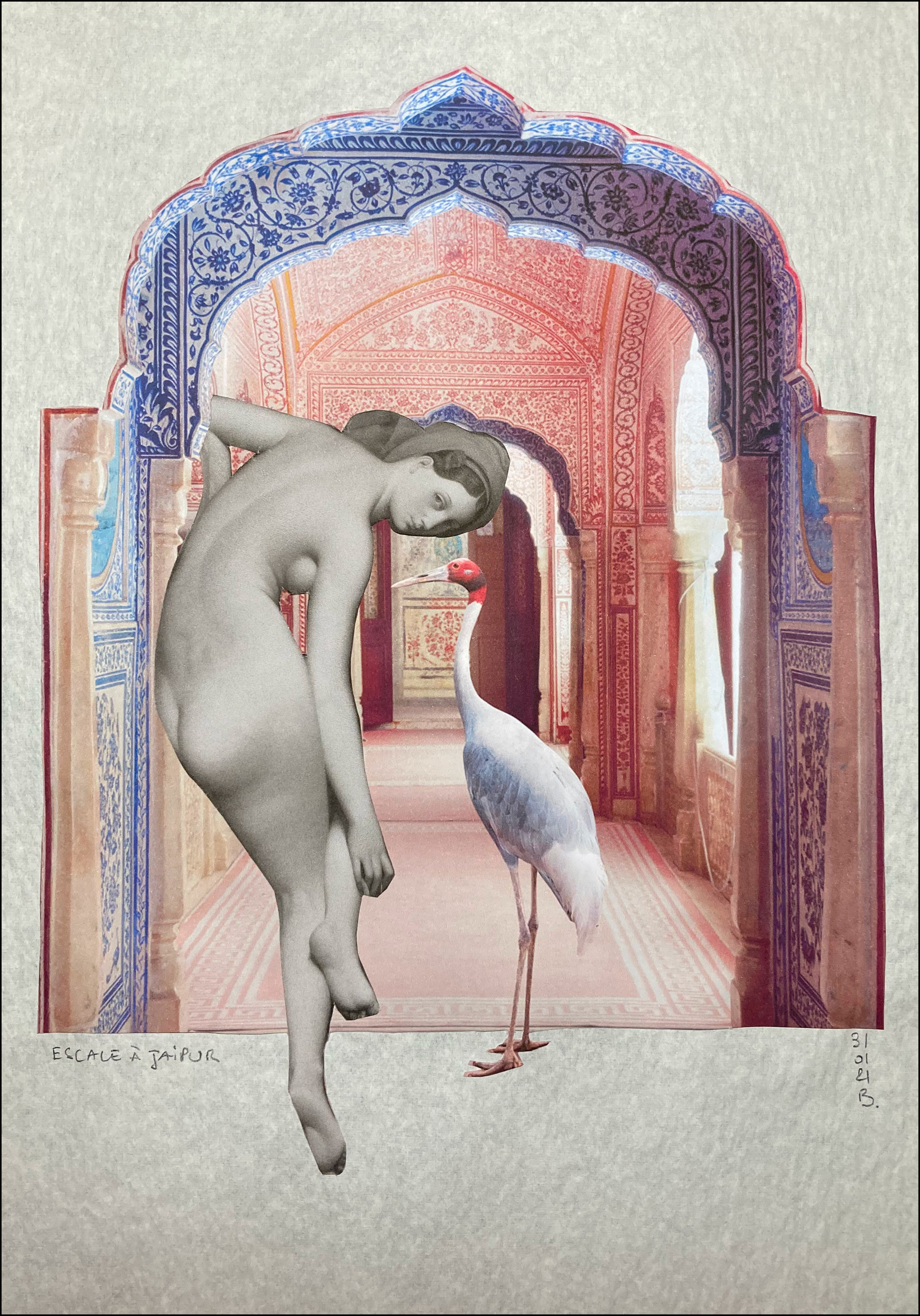Escale à Jaipur © Barbara Sabaté Montoriol, Collage marouflé sur papier de riz, le 31 janvier 2021*