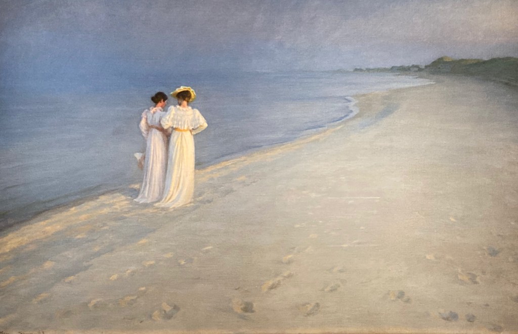 3 Soirée calme sur la plage de Skagen, Sonderstrand (Anna Ancher et Marie Kroyer marchant), 1893, Peder Severin Kroyer (1851-1909) huile sur toile, Skagen’s museum