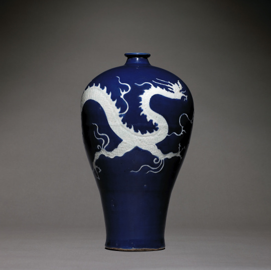 3 Vase meiping, Dynastie des Yuan (1279-1368), Milieu du XIVe siècle, Porcelaine avec décor au bleu de cobalt H – 33,6 cm, Paris, musée national des arts asiatiques Guimet.