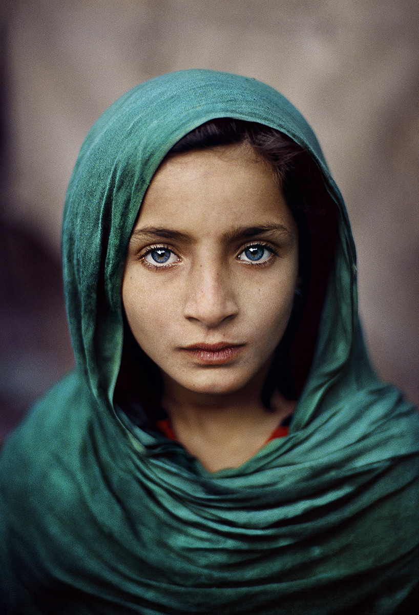 1 Girl with Green Shawl. Afghan Refugee. Peshawar, Pakistan, 2002. © Steve McCurry (né en 1950).