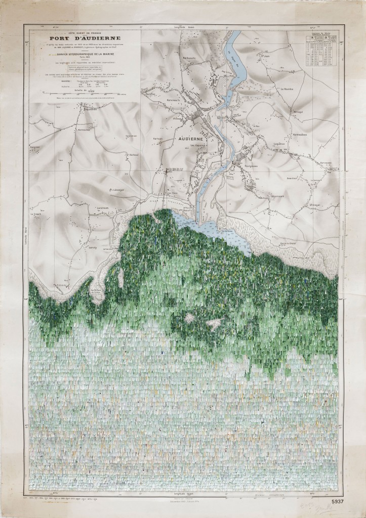 2 Seachart, 2013, Nathalie Boutté (née en 1967), en billets de banque et carte marine, 89,5 x 66,5 cm, collection de l’artiste.