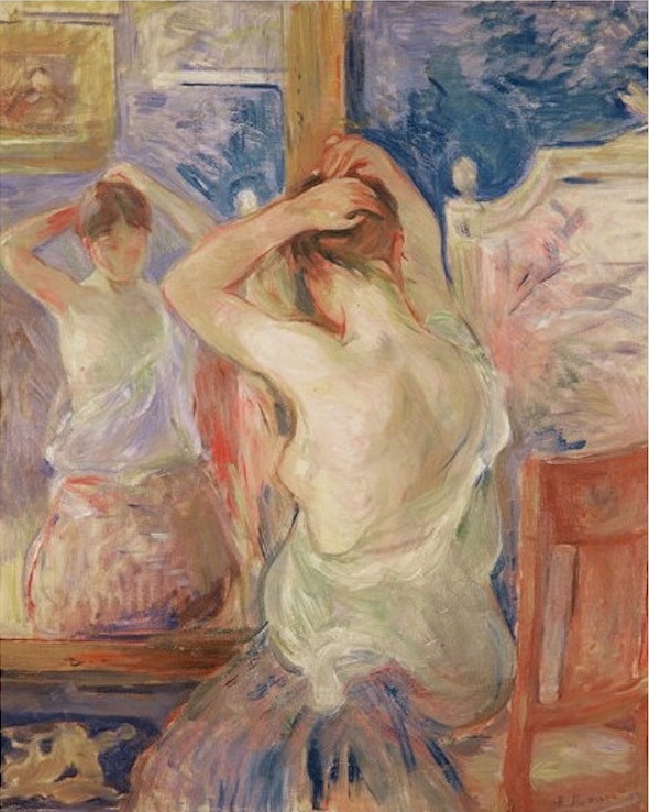 Ce n’est pas seulement l’ordre de sa coiffure que l’on observe dans le miroir mais aussi celui de ses pensées, pour mieux les contrôler et mieux se connaître, et garder toujours un regard vers l’arrière pour ne pas se précipiter en avant.