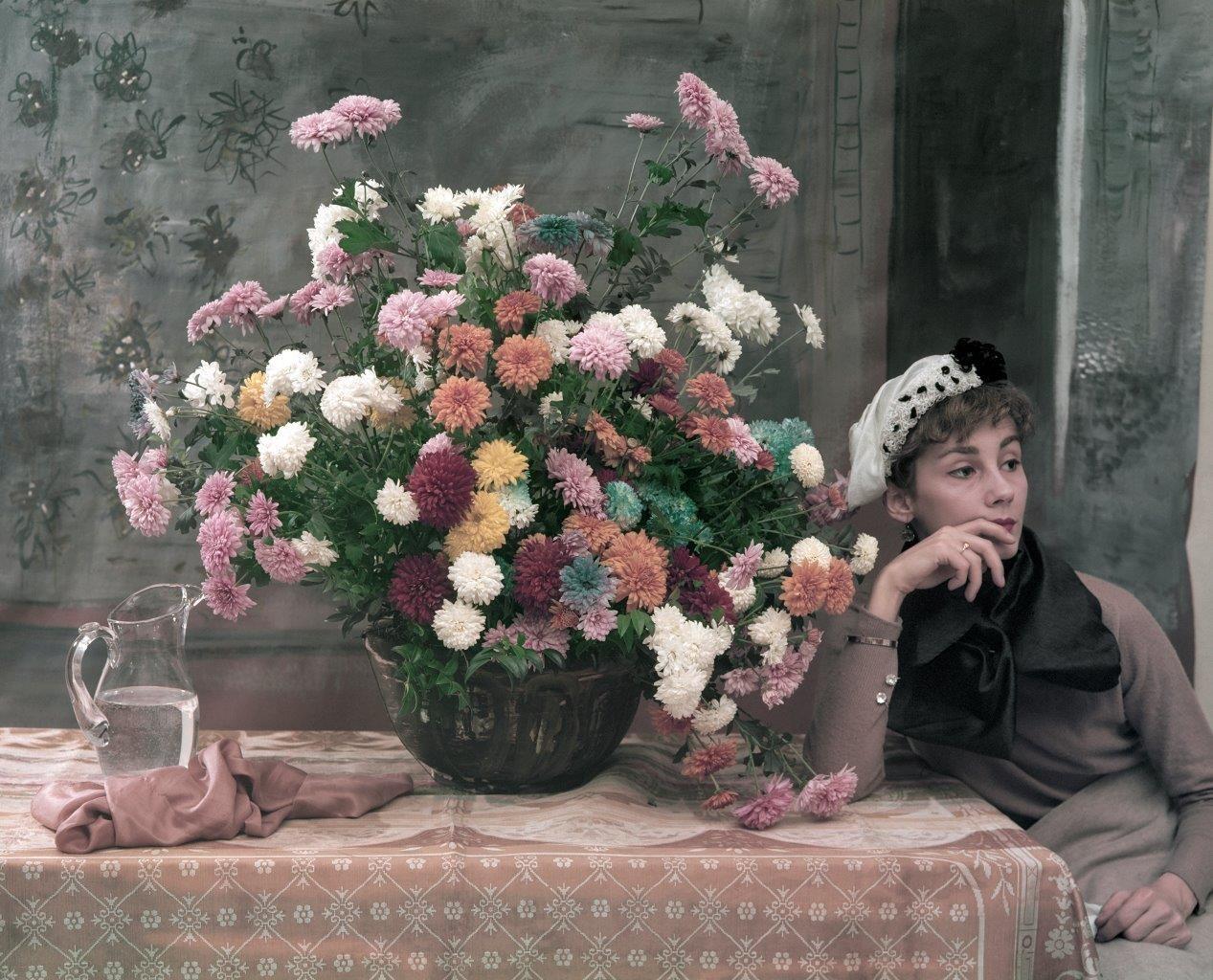 Femme assise à côté d’un vase de fleurs,Edgard Degas (1834 – 1917), huile sur toile, 73,7 x 92,7 cm, NY The MET < > After Degas, Woman and Flowers, New York City, 1960, Tony Vaccaro (né en 1922), Monroe Gallery of Photography