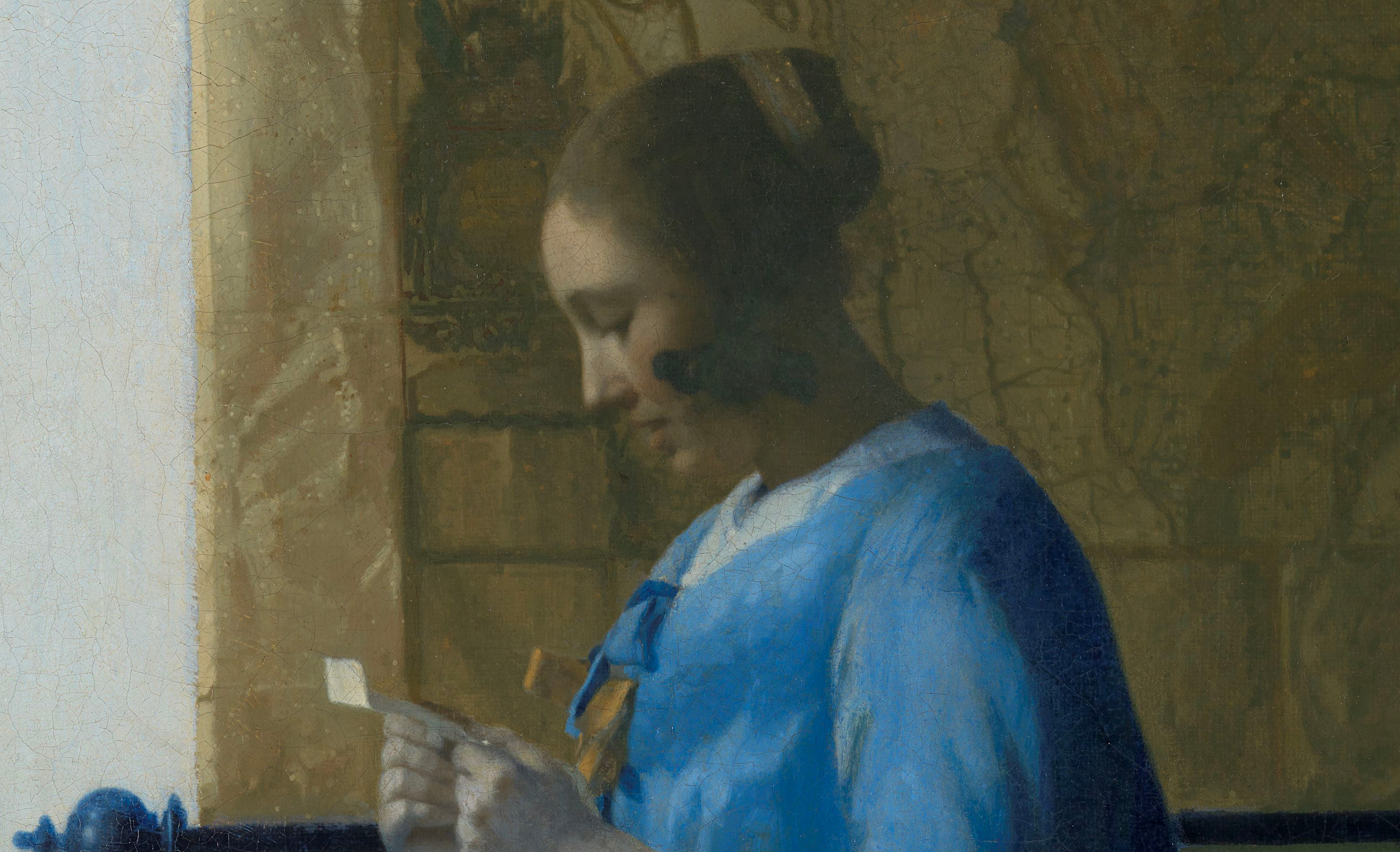 De cette œuvre de Johannes Vermeer aux petites dimensions émane une lumière bleue si douce qu’il est très difficile de s’en détacher. Je me souviens qu’à sa vue, le brouhaha de la grande allée du Rijks museum m’avait semblé comme étouffé par mon émotion.