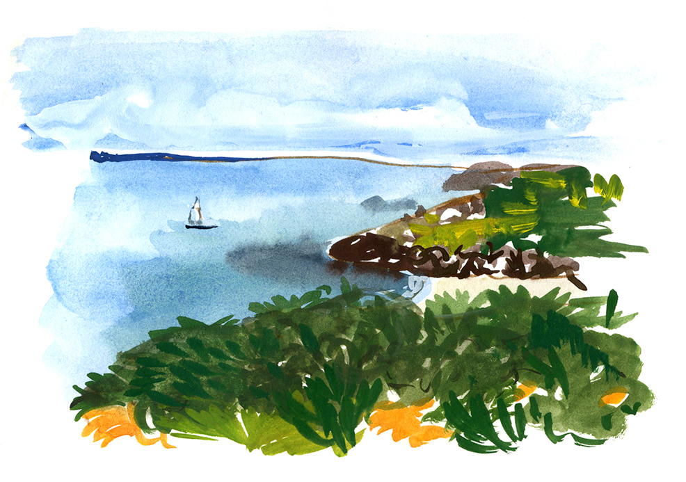 Grand été, Houat. Si belle qu’on ne sait par quelle échancrure l’aborder.