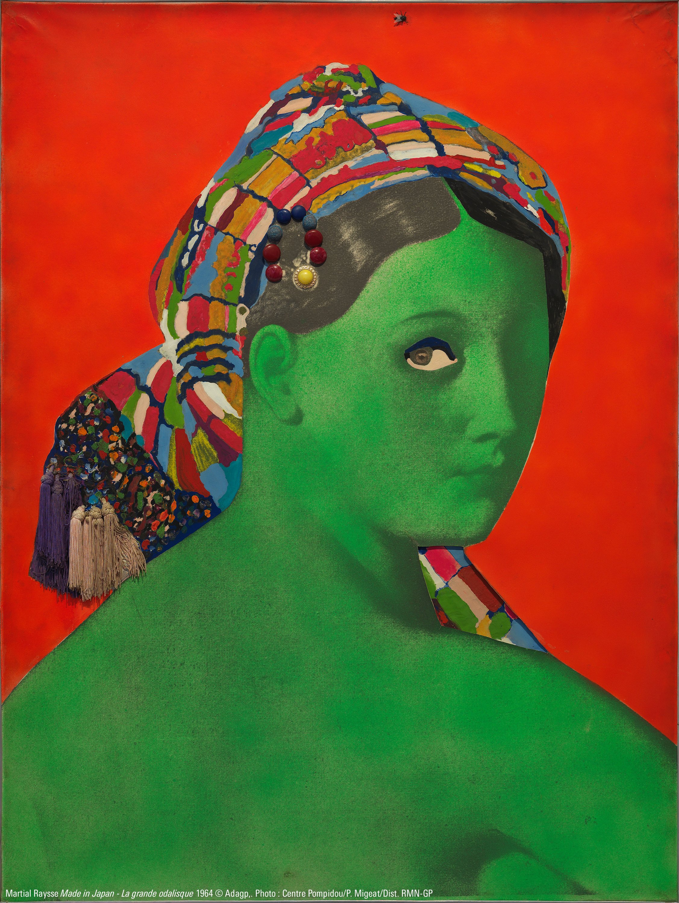 « Sur la composition de Martial Raysse, une mouche en plastique collée renvoie au code de la « mouche peinte », la musca depicta, présente dans l’iconographie depuis la Renaissance pour signifier l’habileté