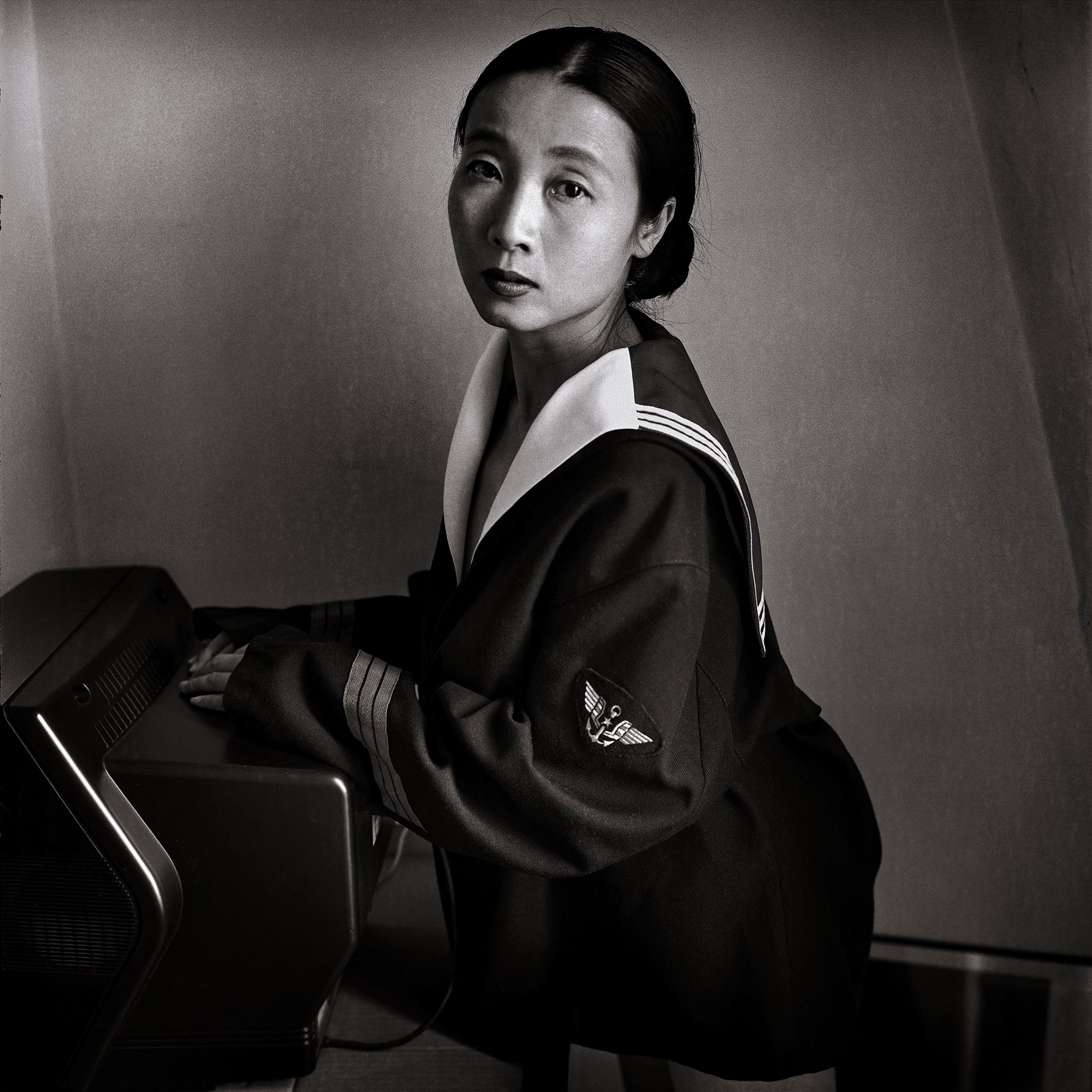 Le léger malaise né de la mise en scène de ce portrait — l’uniforme d’homme trop grand que l’on devine enfilé sur un corps nu — ce regard qui regarde sans voir dans un étrange abandon maîtrisé, je le comprends mieux en découvrant le lien entre le photographe et son modèle.