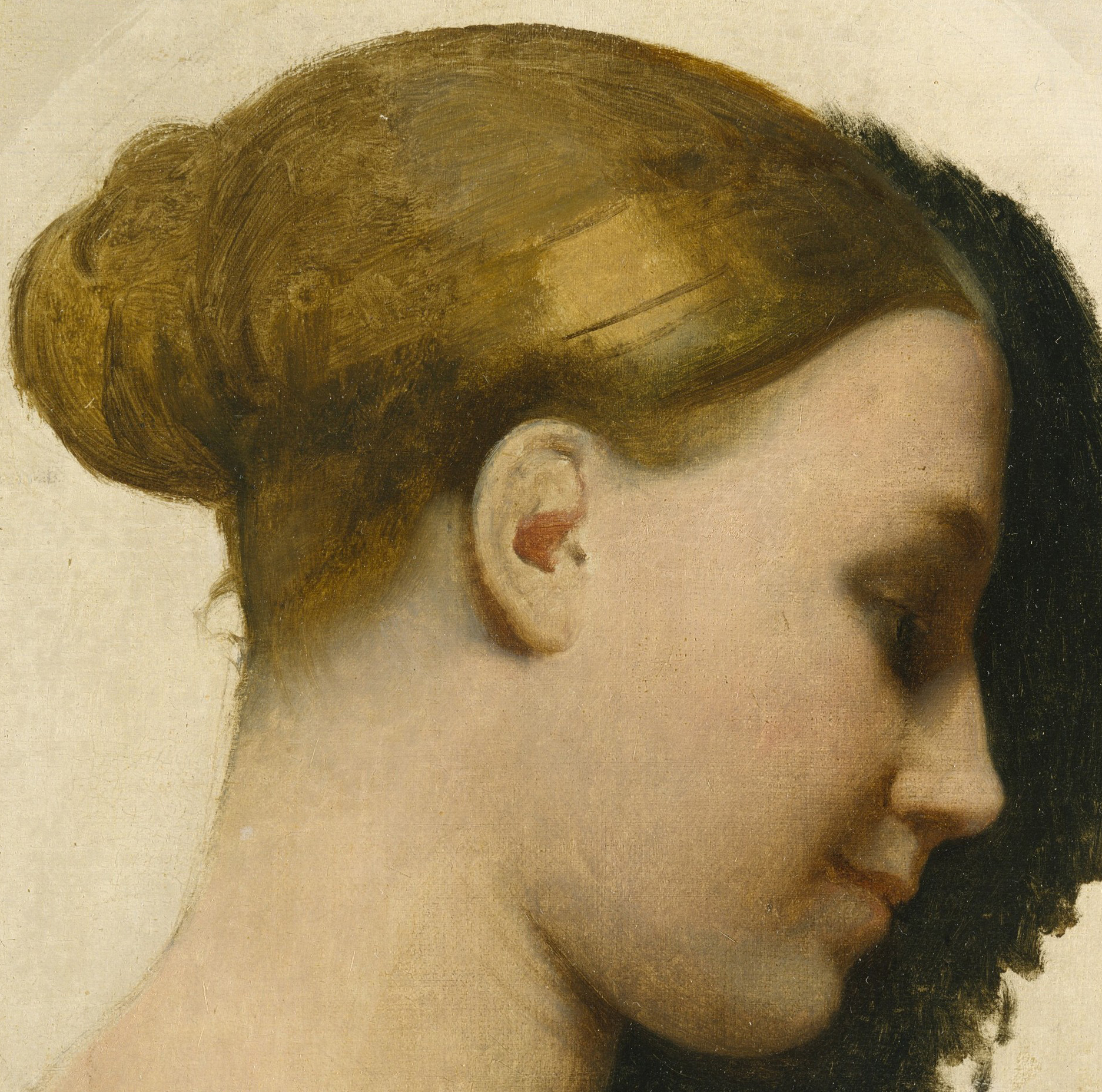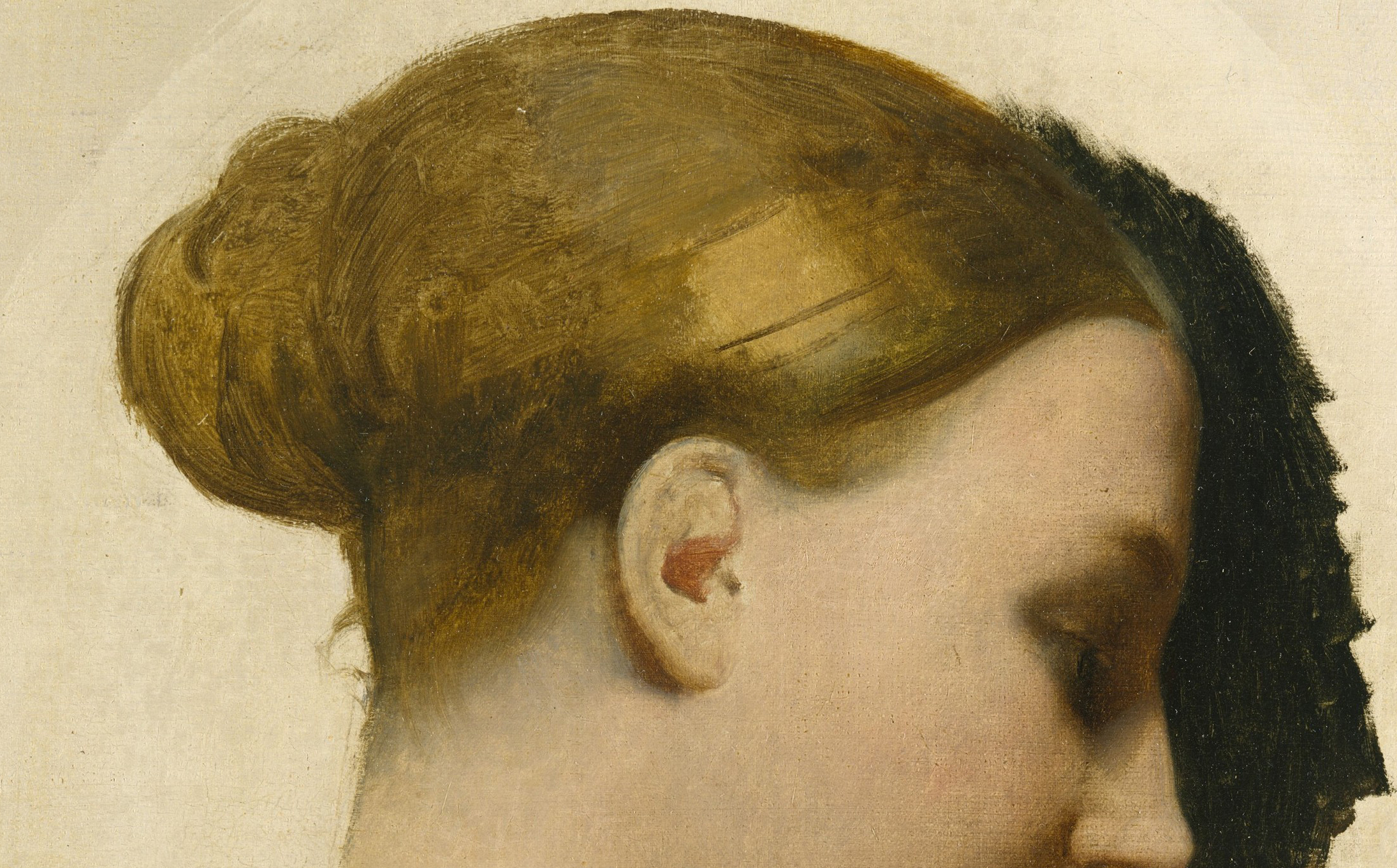 Au moment où Ingres l’a peinte, elle était mariée à l’un de ses élèves, Clément Boulanger (1805–1842). Des traces d’un bord incurvé à la surface de la toile indiquent que le portrait avait été encadré en ovale avant que Ingres n’y ajoute la dédicace en tant que Madame Cavé, ce qui a dû avoir lieu une décennie plus tard, après qu’elle se soit remariée. Le portrait de Monsieur Cavé par Ingres en 1844 — où il arbore le même demi-sourire et le regard intérieur — a été conçu comme un pendant à celui de Marie-Élisabeth.