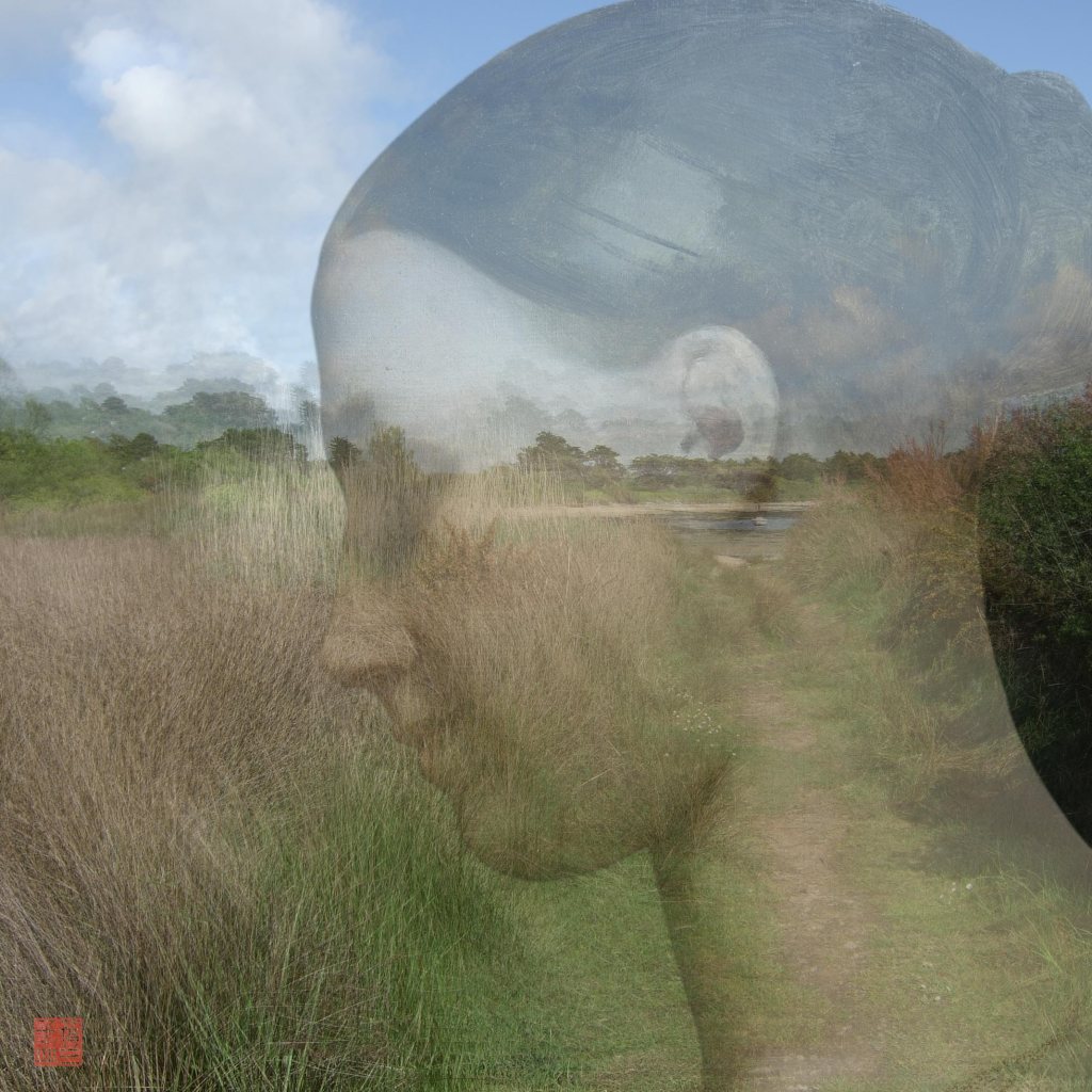 Dans ma série de rêves photographiques Les 36 vues de la petite mer, j’ai imaginé la transposition de ce visage dans un paysage d’ajoncs et de rivage de l’île-aux-moines.