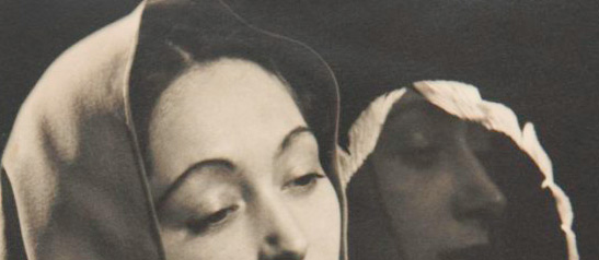 En mai 1935, Man Ray prit ce portrait de Nusch Éluard, épouse du poète surréaliste Paul Éluard. Elle portait une robe sari de la collection Stop, Look and Listen de Schiaparelli, présentée en février 1935.