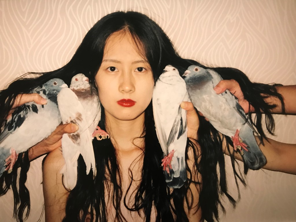 Happée par cette photographie sur les cimaises de Paris Photo 2023, je cherche à en savoir plus sur son auteur, Ren Hang, qui « plus qu’un photographe est un poète visuel qui compose en images des jeux de mots ou de signes. Il procède par collages, collisions et inversions. »1
