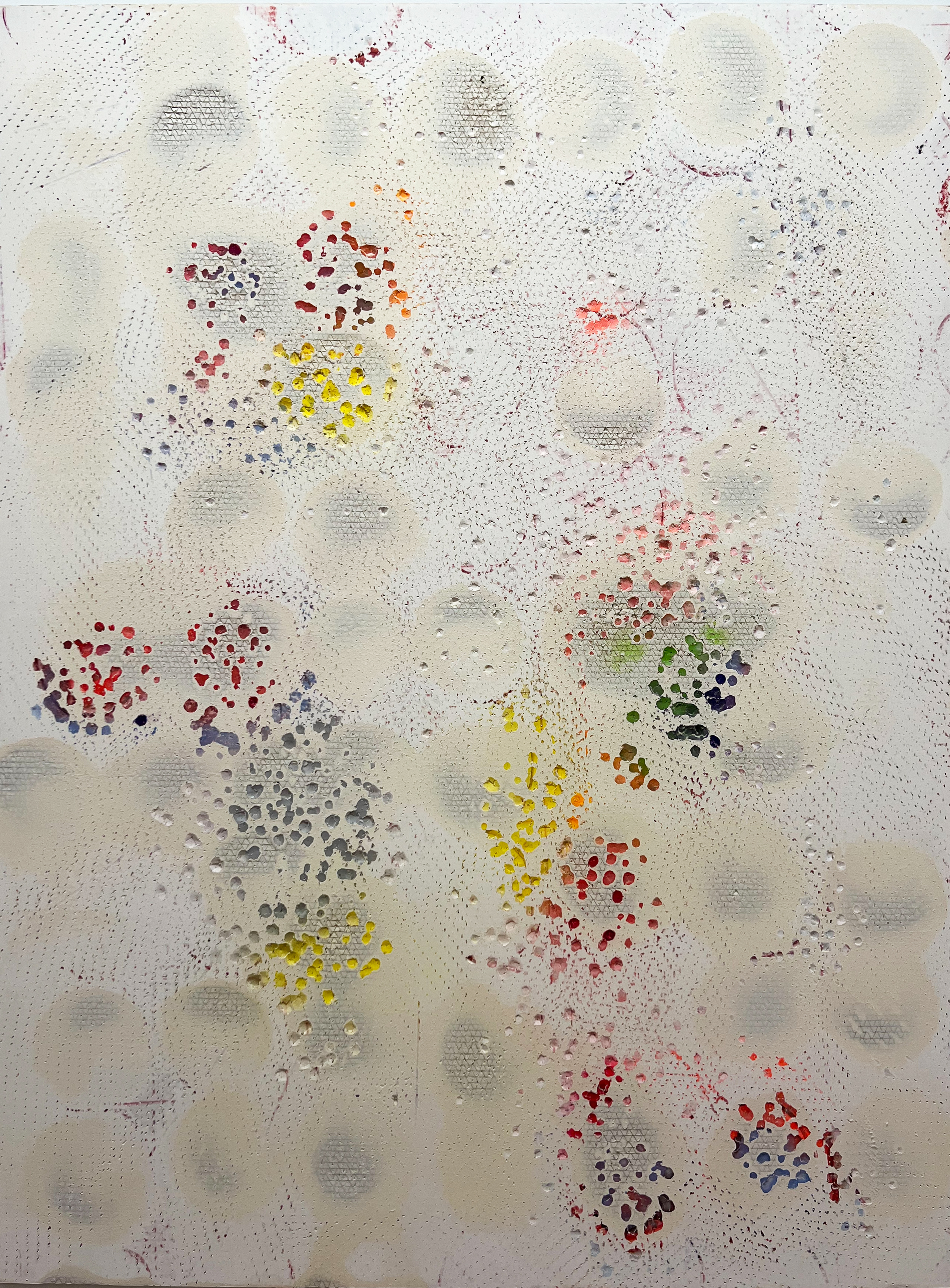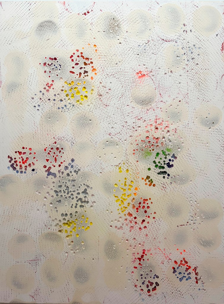Beautés naturelles, 2023, Dominique de Beir (née en 1964), Peinture, pastel,, impacts, carton alvéolé imprimé, Caen, musée des Beaux-Arts