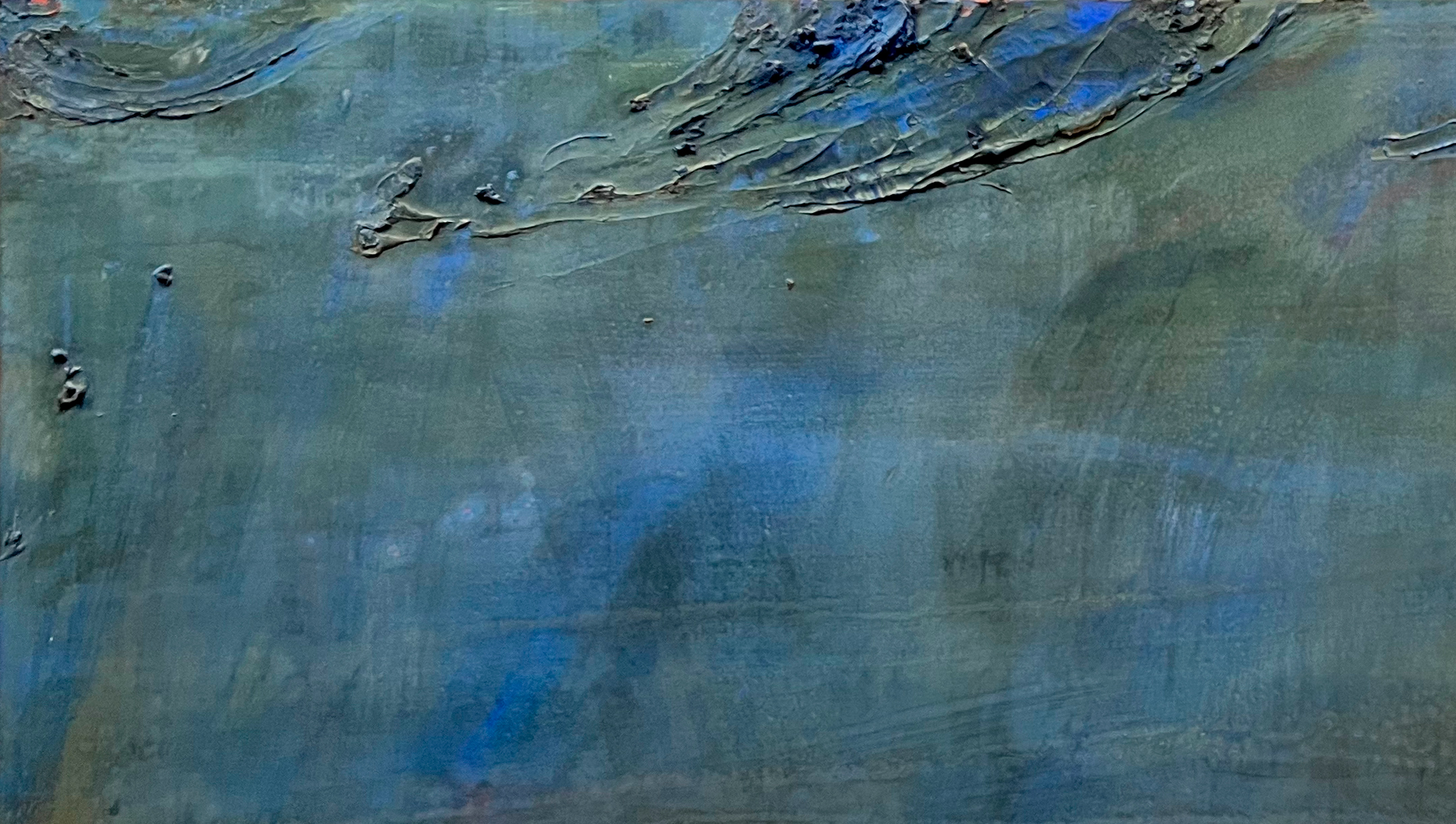 Noire, bleu ocre de Loire, aux taches fortes du Haut-Touraine, 1996, Olivier Debré (1920-1999), huile sur toile, 180 x 350 cm, Caen, musée des Beaux-Arts