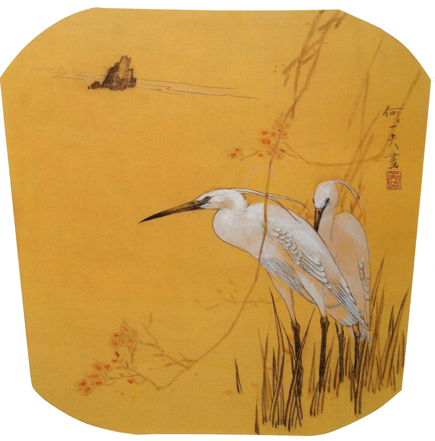 2. Aigrettes, Le Voyage d’un peintre chinois en Bretagne, He Yifu (1952-2008), aquarelle et lavis d’encre
