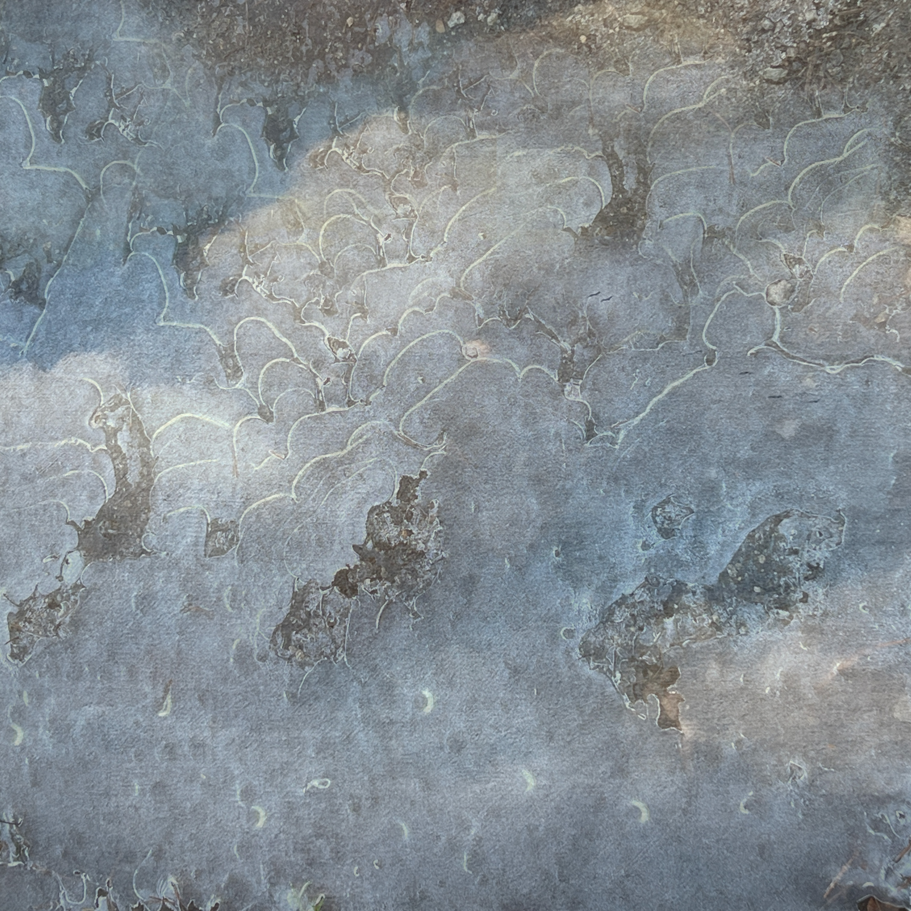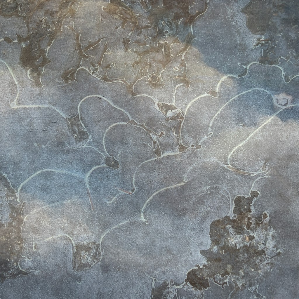 Ce matin, dans une flaque de glace, des dessins de nuages.