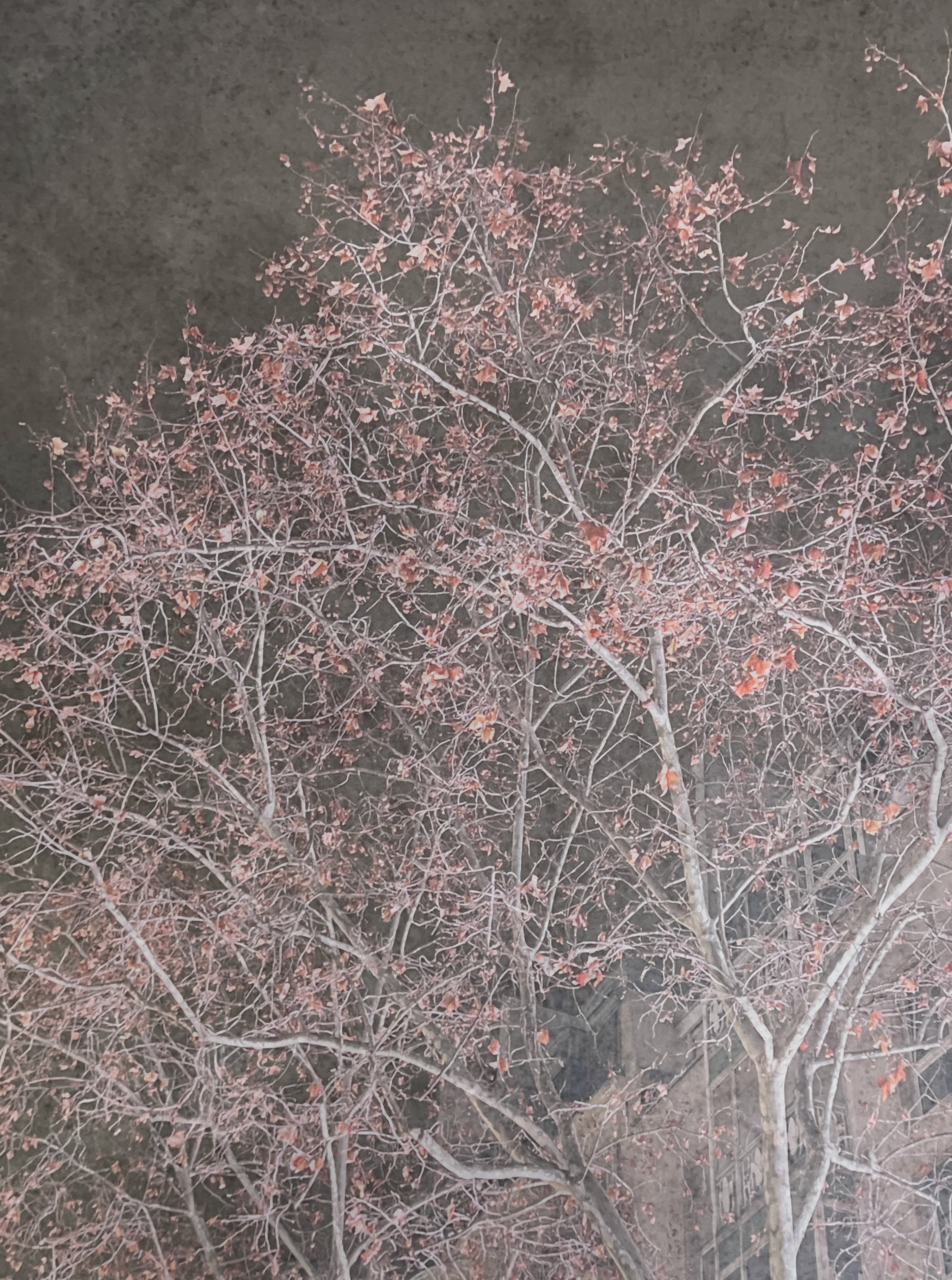 La nuit les lumières de la ville habillent parfois les arbres d’une irréalité désarmante.
