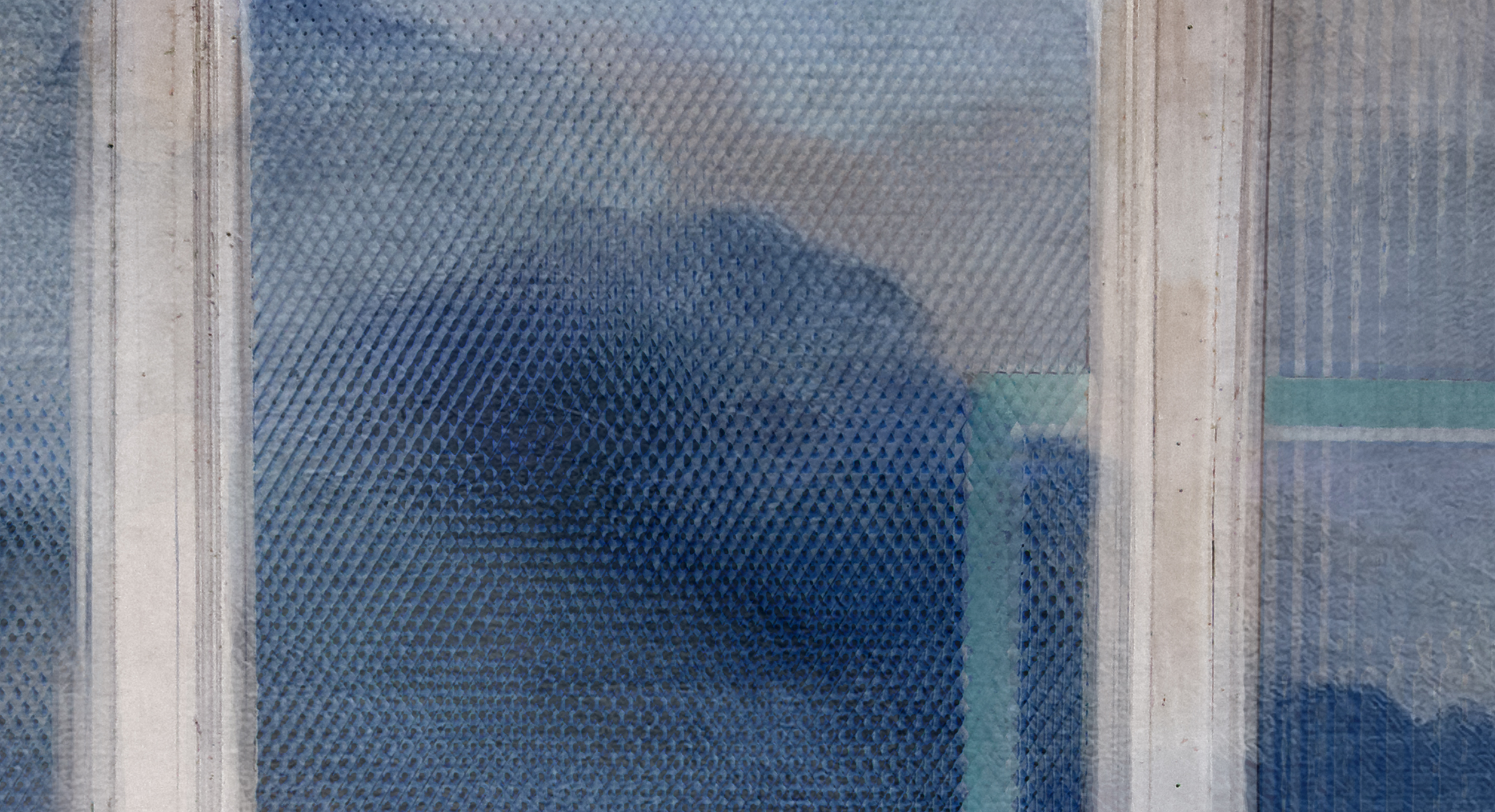 À l’angle d’une rue, il y avait ces fenêtres de verre armé petite maille et peut-être le reflet de nuages de la tombée du jour, en tout cas des formes à l’intérieur que l’opacité du verre rendaient indistinctes dans mon objectif mais d’une magie assez irrésistible.