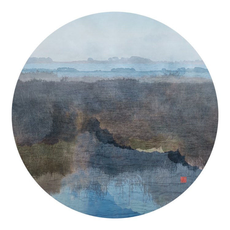 Inventer des mondes possibles, des horizons imaginaires parce qu’ici plus qu’ailleurs, au gré des marées et de l’heure du jour, les étendues d’eaux sont si changeantes.